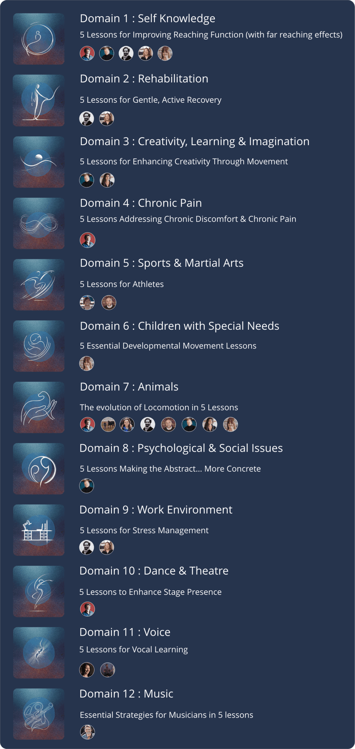 It offers a rich library of documentaries, weekly lessons, and specialized masterclasses on singing, stage presence, all the way to therapy for chronic pain. All the courses share one common thread: learning through movement, awareness, and experiential learning.